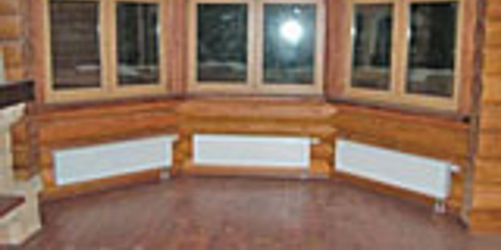 - Толщина стен 1,5–2 кирпича с теплоизоляцией, или то же из бруса или сруб. Площадь окон и дверей не более 15% (хорошо утепленный дом для зимнего проживания) – 20–25 м3