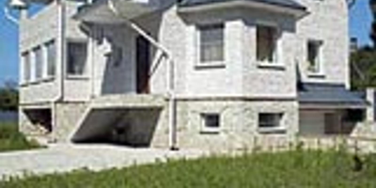 Другие застройщики домов по этому проекту использовали обычный (ширина 700 мм) или поризованный (510 мм) керамический кирпич. Один из последних примеров реализации проекта можно видеть на приведенных здесь фотографиях. Фундамент – монолитная железобетонная плита. Наружные стены дома возведены из газобетонных блоков толщиной 300 мм и облицованы фактурным силикатным кирпичом (65 мм). Между газобетоном и кирпичом располагается слой утеплителя (в данном случае возможно также использование пенополистирола). Такая технология позволила сделать наружную стену достаточно тонкой с сохранением необходимого уровня теплопроводности.
