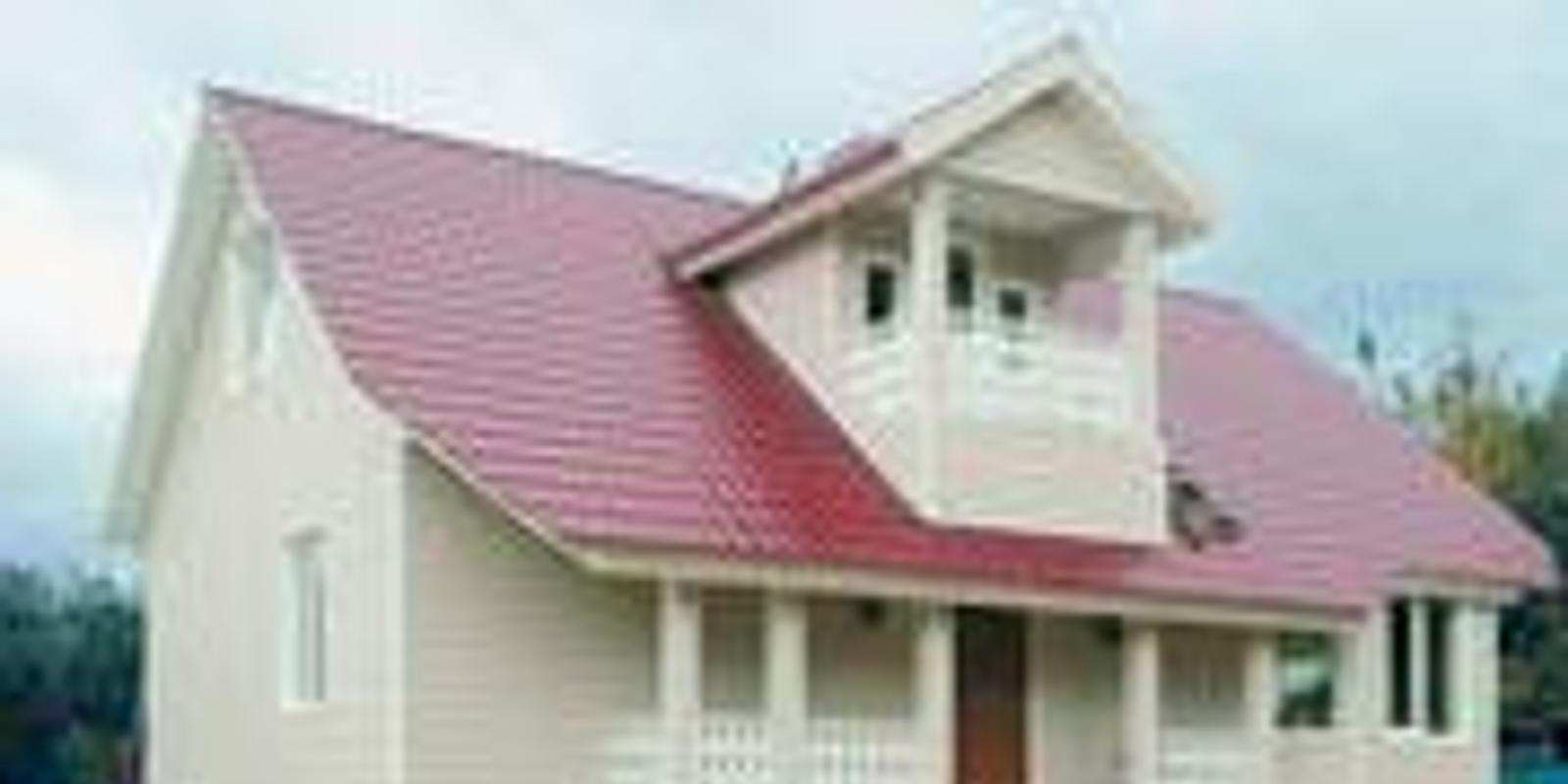 Этот коттедж универсален, подходит для строительства на любом грунте и в любых климатических условиях. При возведении дома можно безболезненно заменять некоторые отделочные и конструкционные материалы. Например, использовать мягкую кровлю, черепицу, ондулин или металлочерепицу – в зависимости от вкусовых предпочтений заказчика. Для обшивки фасадов дома одинаково подойдут кирпич, сайдинг и вагонка. В данном случае хозяин предпочел металлочерепицу и деревянную вагонку – это весьма экономичные, простые и удобные материалы. Тем более такое фасадное решение удачно вписывало дом в окружающий ландшафт.