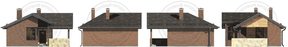 Уютная компактная баня с террасой и дровяником, имеющая небольшое пятно застройки. Достаточно большая площадь постройки позволила разместить здесь необходимое количество помещений, делающих планировку удобной и комфортабельной. Здесь есть парная, просторная комната отдыха, санузел и прихожая. В теплое время года отдохнуть после бани можно на комфортной террасе.