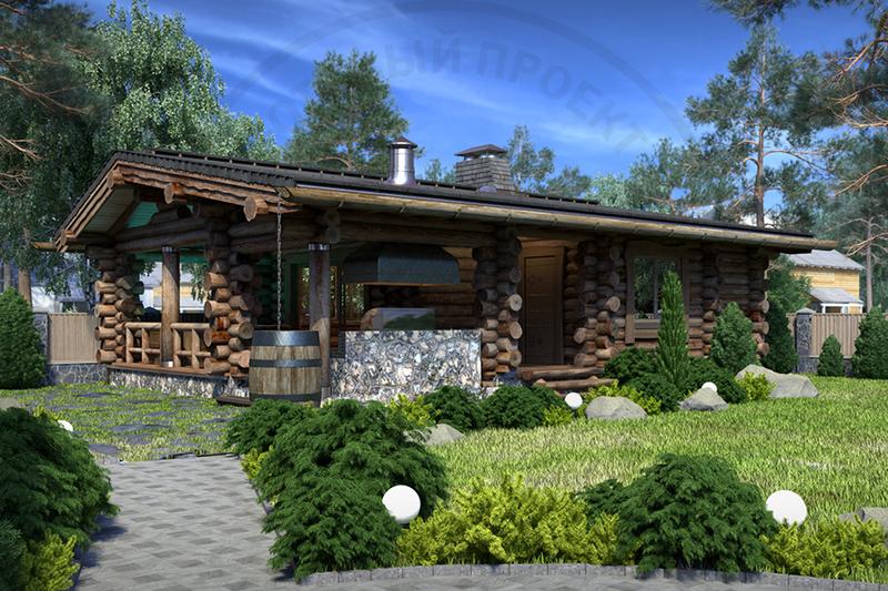 Особенностью данного проекта является то, что благодаря удачной внутренней планировке и универсальной стилистике, баня послужит прекрасным дополнением практически к любому коттеджу. И не будет нарушать общую гармонию застроек на участке.