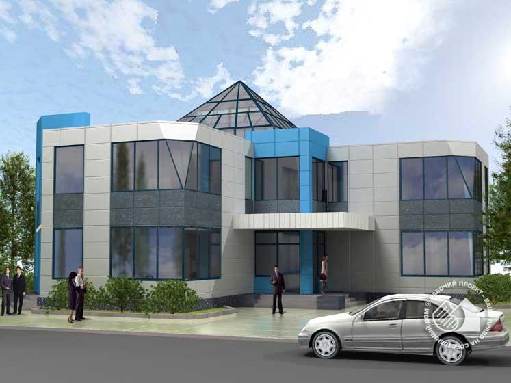 Двухэтажное здание офисного назначения – функциональное, удобное, современное по объемно-планировочному решению и внешнему виду. Оно задумано как блок-модуль, предполагающий различные варианты блокировки или использование одного блока, как в данном случае. На первом этаже предусмотрены служебные и технические помещения. Помещение свободной планировки позволит разместить офисное оборудование в соответствии со спецификой работы компании. Такое же по назначению, но несколько большей площади помещение предусмотрено и на втором этаже. Там же находятся и кабинеты руководства. Здание имеет три входа, один центральный для клиентов и два служебных. Существующий вариант блокировки трех блок модулей вы так же можете увидеть в нашей коллекции.
