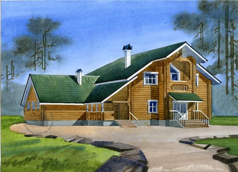 Этот ресторан в хорошем смысле слова своим обликом напоминает старинный придорожный трактир. Его расположение наиболее уместно в живописном пригороде или в современном коттеджном поселке. В сочетании с окружающей природой он будет смотреться особенно гармонично. Проектом предусмотрены два этажа. В центре первого расположен зал ресторана с баром и небольшим VIP-залом. Крытая терраса также используется в теплое время года. Служебная зона представлена стандартным набором помещений и имеет свой выход на улицу. В горячем цехе по периметру помещения предусмотрена дополнительная оболочка из кирпича. Для посетителей вход в здание оформлен выступающим ризалитом, на первом этаже в нем расположен тамбур, на втором – красиво декорированный балкон. Непосредственно при входе в ресторан расположено помещение метрдотеля и гардероб. На втором этаже находится еще один зал ресторана. Общий зал здесь дополнен двумя кабинетами и еще одним VIP-залом. Кроме основной лестницы, из зала вниз можно спуститься по второй лестнице с балкона.