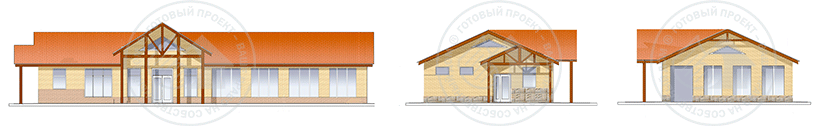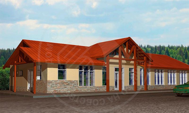 Одноэтажный магазин представляет собой прямоугольный объем, имеющий в плане размеры – 24 х 9м. Вход выделен декоративным навесом. Загрузка товаров и вход персонала осуществляется с бокового фасада. В магазине запроектированы: два торговых отдела, подсобное помещений персонала и санузел персонала. Здание покрыто двухскатной крышей с врезанным декоративным фронтоном. Центральная часть выделена входным портиком на деревянных стойках.