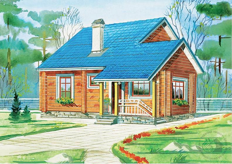 Уютный домик, прекрасно приспособленный для маленьких участков, обеспечивает всем необходимым небольшую семью. Он недорог как в строительстве, так и в эксплуатации. Силами двух-трех человек он легко возводится на ленточном или столбчатом фундаменте за один сезон. В доме одноэтажная мансарда. Планировка рациональна и компактна и позволяет на очень небольшой площади разместить четыре жилые комнаты и кухню. В проекте предусматривается локальное отопление от котла, водозабор от внешних сетей. Ориентация по сторонам света – свободная.