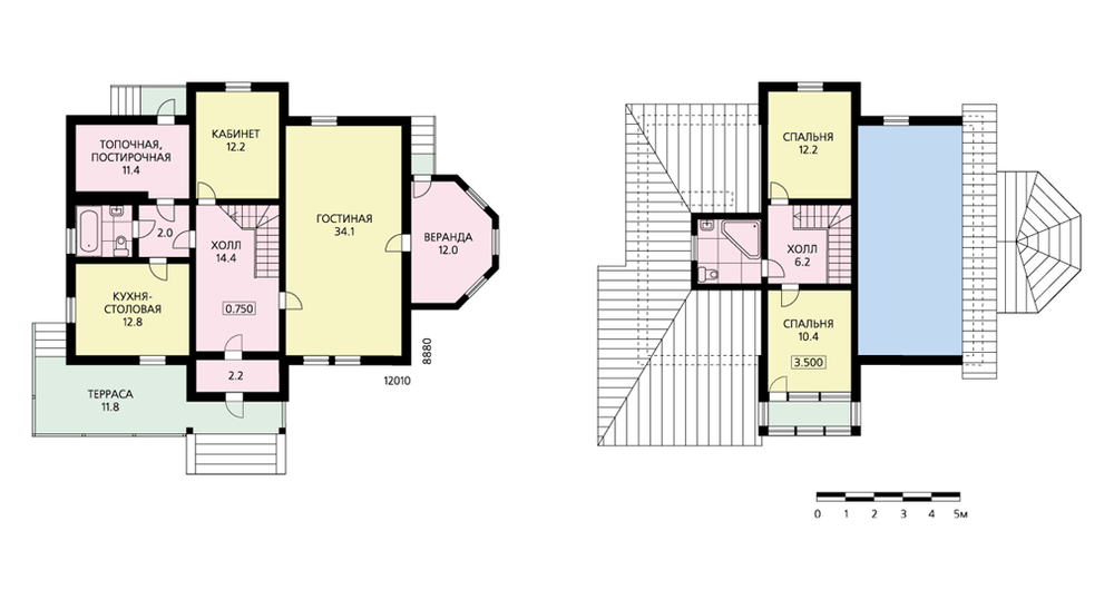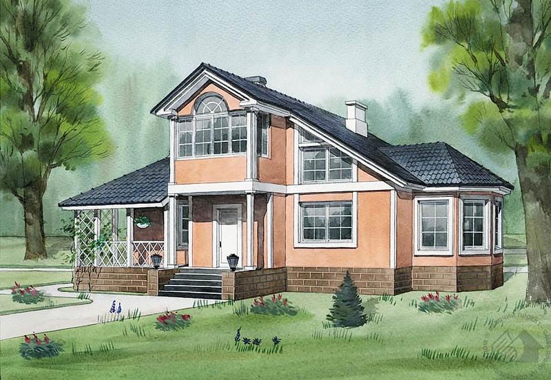 Этот уютный дом вполне можно отнести к наиболее экономичным постройкам. И не только в связи с максимальным использованием строительного объема и компактной планировкой, но и благодаря конструктивному решению. Основой дома является деревянный каркас с заполнением теплоизолирующим материалом. Отделка – как наружная, так и внутренняя – может быть любой. Планировка проста и удобна. Просторный холл с лестницей – ядро дома. Самое парадное помещение, двусветная гостиная, может стать определяющим в выборе стиля оформления интерьера. В планировку очень легко внести необходимые изменения. Кроме того, у владельцев этого дома всегда будет возможность расширить его за счет пристраиваемых веранд – летних или утепленных.