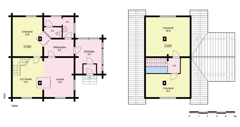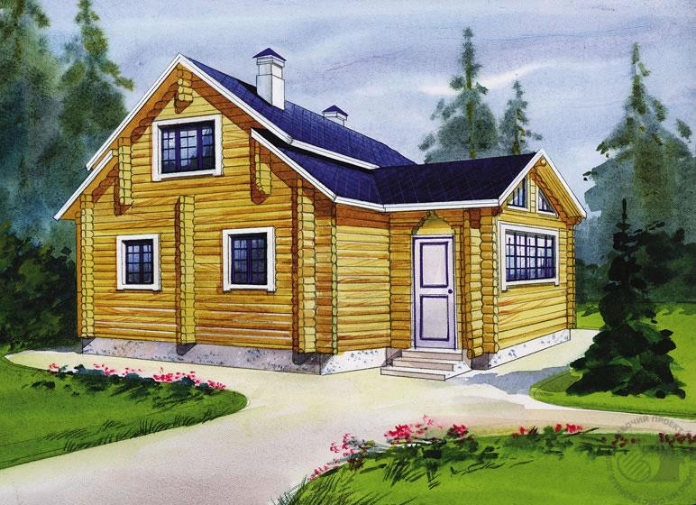 Деревянный дом из оцилиндрованного бревна выполнен в традиционной для этого материала манере. К основному двухэтажному объему примыкает одноэтажная входная веранда. Планировка дома проста и рациональна, лишена каких бы то ни было излишеств, но полностью обеспечивает необходимый минимум комфорта для сезонного проживания небольшой семьи. В доме предполагается печное отопление, и обе печи, имеющиеся в доме, расположены так, что обогревают все его жилые помещения. В мансарде расположены две спальни, еще одна находится на первом этаже дома.
