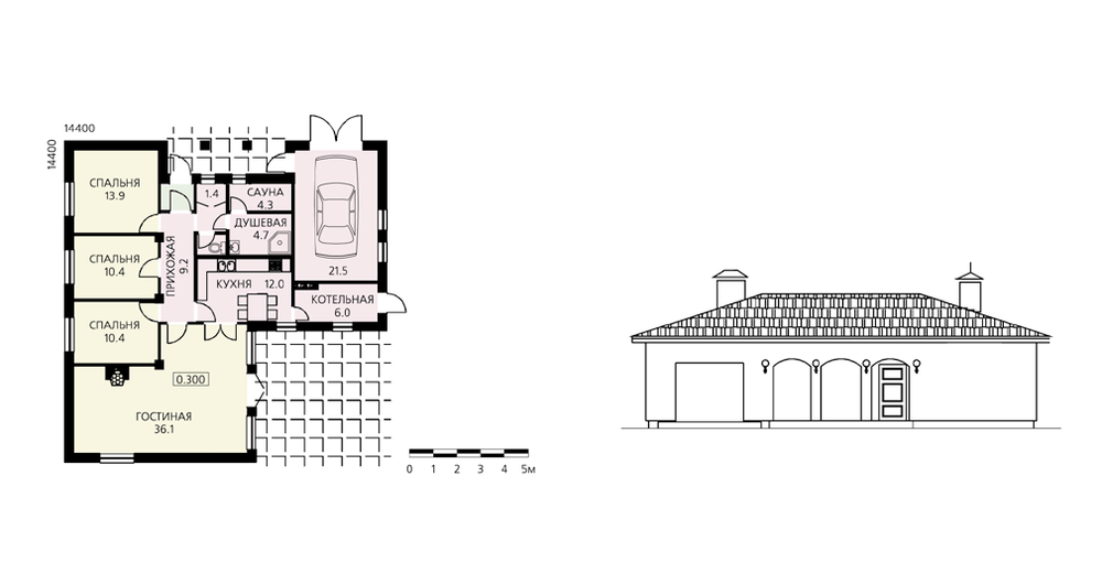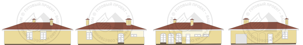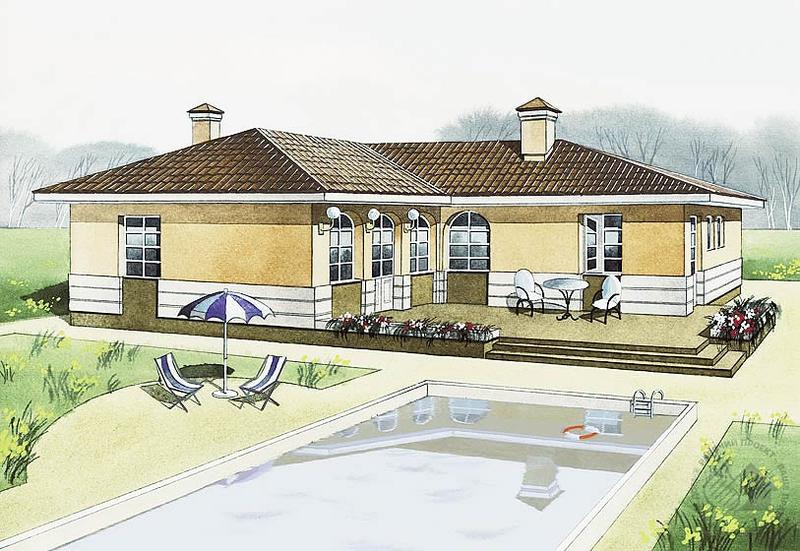 Этот проект – один из вариантов домов, решенных в одном уровне. Такие дома всегда были популярны среди застройщиков, особенно владельцев больших участков. Компоновка блоков помещений в одном развитом объеме позволяет создать полузамкнутое, защищенное со всех сторон пространство. Планировка дома решена предельно рационально – в доме практически отсутствуют транзитные зоны. Предложенное авторами размещение блоков помещений может быть изменено владельцами в соответствии с образом жизни. Отсутствие протяженных внутренних стен позволит изменить планировку дома, выполненную в перегородках.