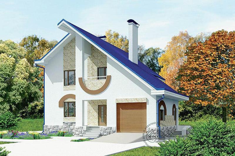 Этот двухэтажный кирпичный дом, несмотря на небольшой объем, предоставляет высокий уровень комфорта его обитателям. На первом этаже размещаются гараж с самостоятельным входом в дом, котельная, большая прихожая, гостиная, кухня и светлая ванная. На втором этаже – три большие спальни и ванная, расположенные вокруг холла. Над гаражом предусмотрен чердак, используемый для хозяйственных нужд. Особенностью дома является возможность его возведения на участках с высоким уровнем грунтовых вод. Простая, но оригинальная архитектура дома делает его запоминающимся и хорошо гармонирует с природой. Если включить в данный проект мансардные окна Velux, можно дополнительно осветить большую спальню и холл.