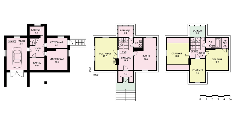 - Трехуровневый коттедж из бруса