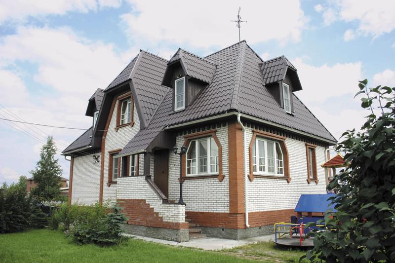 Проект этого деревянного дома был специально разработан для представителей среднего класса. И несмотря на приверженность классической традиции, дом получился современным, компактным и рациональным. Он может стать удачным решением загородного жилья и для тех, кто хочет здесь весело провести отпускные дни, и для тех, кто намерен пережить в нем суровую зиму. Наружные стены выполнены из бруса и облицованы кирпичом, между срубом и кирпичной кладкой предусмотрена теплоизоляция. В планировочном отношении дом достаточно традиционен: первый этаж – зона дневного пребывания и гараж, мансардный этаж – приватная часть дома. Необычным кажется появление универсального зала в мансардном этаже. Это помещение, расположенное над гаражом, может выполнять самые различные функции в зависимости от образа жизни и желания хозяев дома.