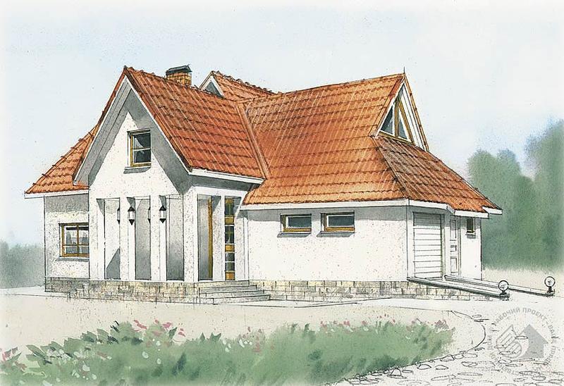 - Кирпичный коттедж с мансардой