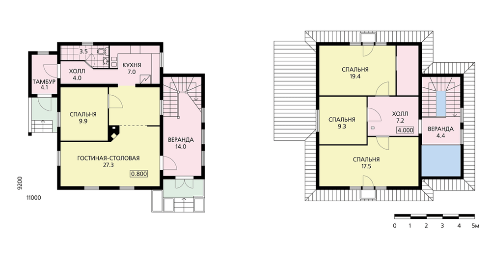 Строгие, уравновешенные по пропорциям фасады – не единственное достоинство этого экономичного дома. Компактный план, природный материал наружных стен (брус), рациональное планировочное решение делают этот проект универсальным. Отсутствие внутренних несущих стен позволит владельцам творчески отнестись к предложенному авторами варианту планировки. Перегородки, формирующие комнаты, могут быть поставлены в соответствии с пожеланиями хозяев дома. Это касается как первого, так и второго этажа. Оборудование дома системой отопления и утепление наружных стен позволят владельцам создать комфортное жилище, в котором можно жить круглый год. Размеры и число жилых комнат второго этажа можно изменить, все зависит от желания и потребностей семьи.