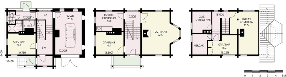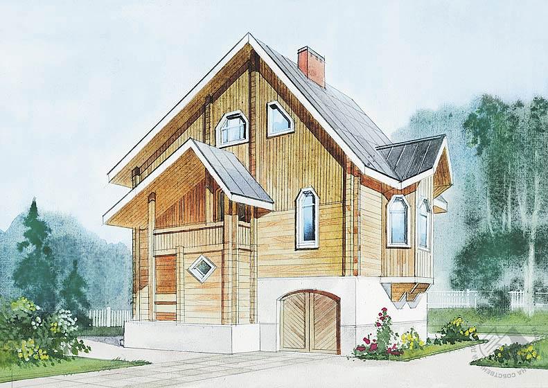 - Трехуровневый коттедж из бруса