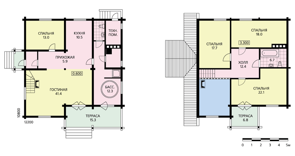 Экологичность и комфортабельность этого деревянного дома очевидны. В проекте сочетается использование дерева с современными планировочными тенденциями. Большая прихожая, просторная гостиная-столовая и кухня образуют единое пространство. Жилая комната, расположенная при входе, может стать кабинетом или принадлежать старшему члену семьи. Сауна с бассейном и вспомогательные помещения расположены в первом этаже и выделены в отдельный блок, который с одной стороны непосредственно связан с гостиной, а с другой имеет выход на просторную террасу. В мансарде расположены три вместительные спальни. Их количество можно увеличить, перекрыв второй свет гостиной.