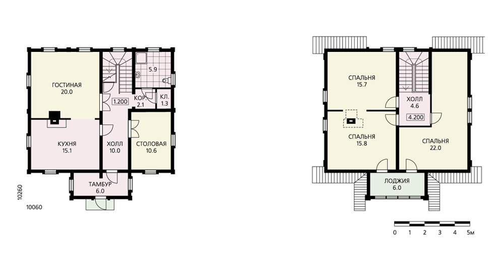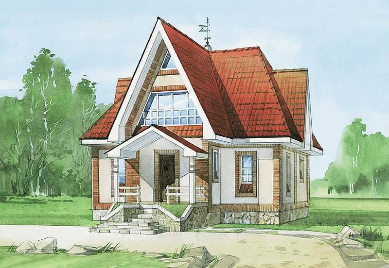 Уютный, компактный коттедж, выполненный из бруса и предназначенный для постоянного или временного проживания небольшой семьи. На первом этаже гостиная и кухня лишь условно отделены друг от друга камином и частично перегородкой. Вполне возможно объединить эти два помещения в одно. Площадь кухни позволит разместить здесь же и столовую. Такая рокировка поможет использовать площадь освободившейся столовой как спальню. В доме нет отдельно выделенного помещения котельной, котел и разводка находятся в помещении санузла на первом этаже. На мансардном этаже размещены три спальни, площадь и планировка самой большой из них позволяет разделить ее на две меньшей площади, увеличив таким образом количество жилых помещений дома.