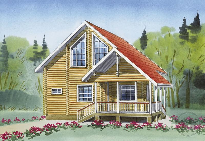 Небольшой, но очень симпатичный и комфортабельный дом из бруса для отдыха городской семьи. К жилому объему здания примыкает просторное крытое крыльцо-терраса, откуда мы и попадаем в дом. Через небольшую прихожую проходим в гостиную, которая является распределительной зоной дома. Отсюда можно попасть во все его помещения: жилые комнаты первого этажа и мансарды. Большой светлый холл мансарды может быть оборудован как диванная, игровая или дополнительная гостиная. Можно, отделив перегородкой часть холла, разместить здесь еще одну спальную комнату. Современные отделочные материалы, такие как кровельные покрытия, тонировки и краски для дерева, позволят создать различные варианты отделки фасадов этого дома.