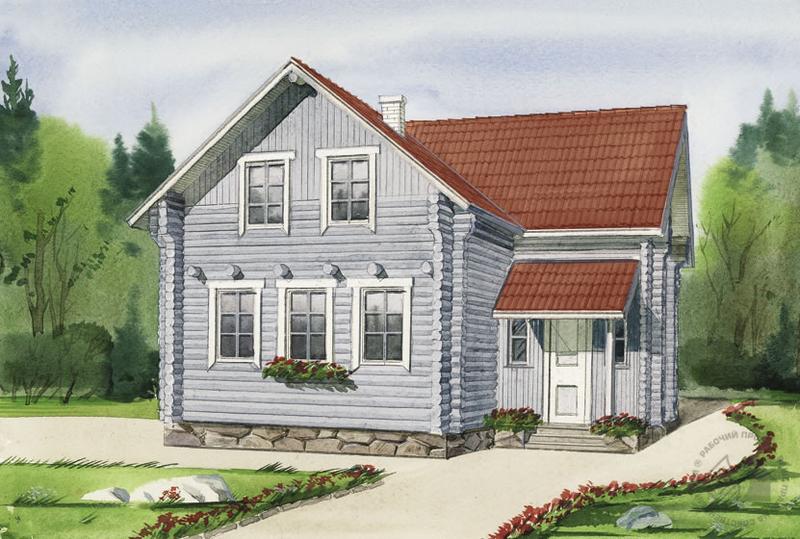 Далеко не всегда следует отказываться от простоты, тем более если за ней стоят добротность и комфорт. Небольшой деревянный дом с мансардой – достаточно убедительное подтверждение этому. В доме рациональная, даже несколько аскетичная планировка, но набор помещений вполне достаточен для сезонного проживания небольшой семьи. Большая прихожая может быть оборудована встроенными шкафами или частично занята кладовой. Просторная гостиная с камином – место сбора всей семьи. По открытой деревянной лестнице можно подняться на мансарду, где в распоряжении хозяев дома три спальни: две детские и одна большая для родителей. Небольшая ванная комната дополняет планировку. Фасады под стать внутренней планировке достаточно лаконичны и незамысловаты, при желании их можно обогатить резными декоративными элементами.