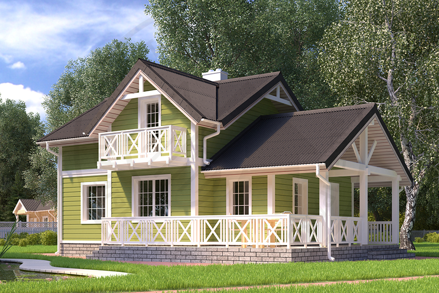 Небольшой каркасный коттедж с современным и выразительным внешним обликом. Предложенная проектом планировка удобна, рациональна, а в сочетании с конструктивным решением еще и экономична. В доме нет подвала и чердака, по максимуму используется весь объем здания. Кроме того, компактный план позволит посадить такой дом на небольшой участок.