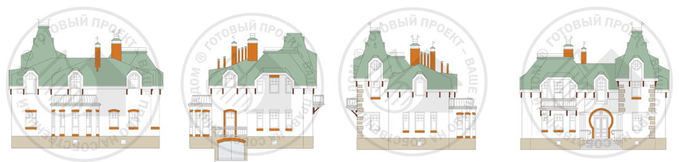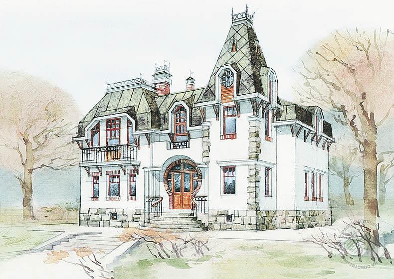 Парадный облик этого особняка будет радовать не только владельцев, но и всех жителей поселка. Создать эту запоминающуюся постройку позволило гармоничное сочетание элементов классического стиля. Планировочное решение соответствует высоким требованиям комфорта и учитывает современные приемы организации пространства. Большая прихожая раскрывается на полуциркульный эркер столовой. Гардеробная позволит владельцам избавиться от традиционных шкафов и создать парадное пространство холла. Компактный план, предложенная конструктивная схема и строительные материалы делают дом доступным по затратам на его возведение. В подвальной части дома предусмотрен резерв подсобных помещений, не показанных на плане и не включенных в общую площадь.