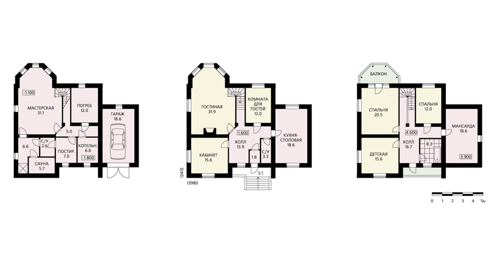- Трехуровневый коттедж