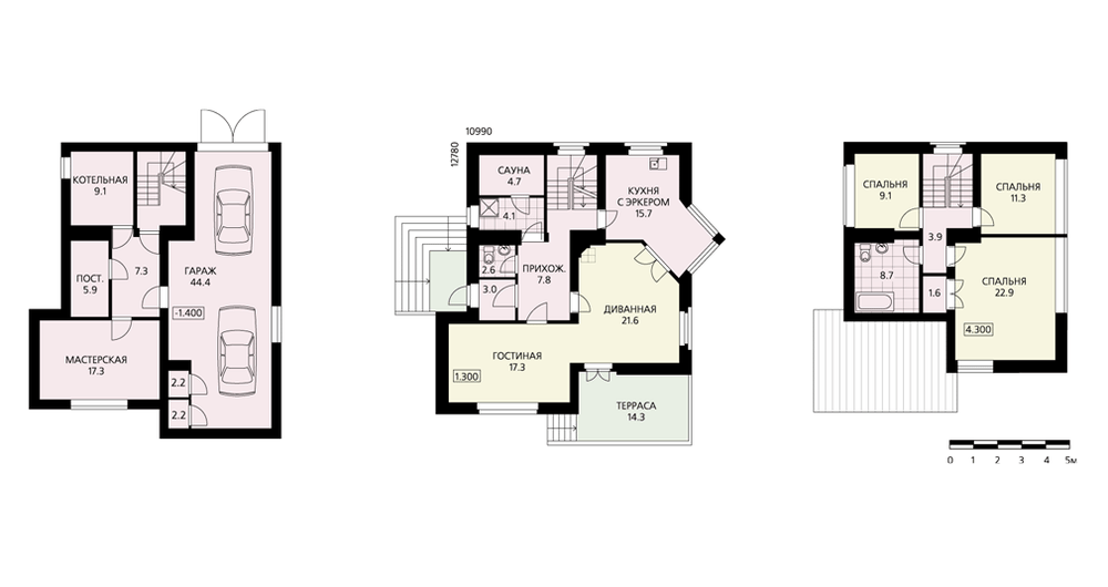 - Трехуровневый коттедж