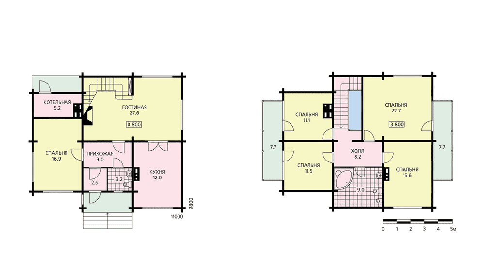 Перед вами модификация одного из самых любимых у наших заказчиков проекта, но, в отличие от первоисточника, предлагаемый вариант выполнен из бруса. По всем остальным объемно-планировочным характеристикам дома практически идентичны. И это сделано сознательно, так как базовая модель дома настолько удачна и востребована, что любые существенные изменения просто не оправданны. В доме два жилых этажа, один из которых мансардный. На первом этаже расположены просторная гостиная, кухня и спальня. Практически вся площадь мансарды занята спальными комнатами, лишь небольшую ее часть занимают ванная комната и холл. Гараж в данном варианте предполагается отдельно стоящим. В базовом варианте проекта Е-0244-0 – гараж встроенный, наружные стены – из газобетона.