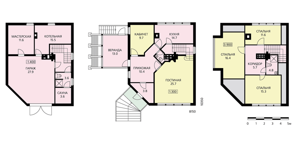 - Трехуровневый коттедж из бруса