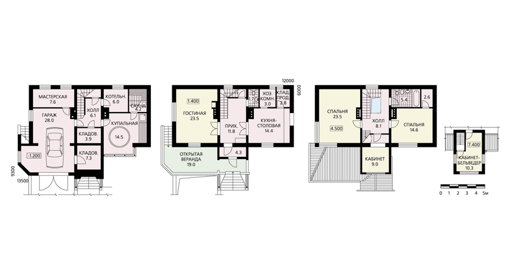 Четырехуровневый коттедж из бруса