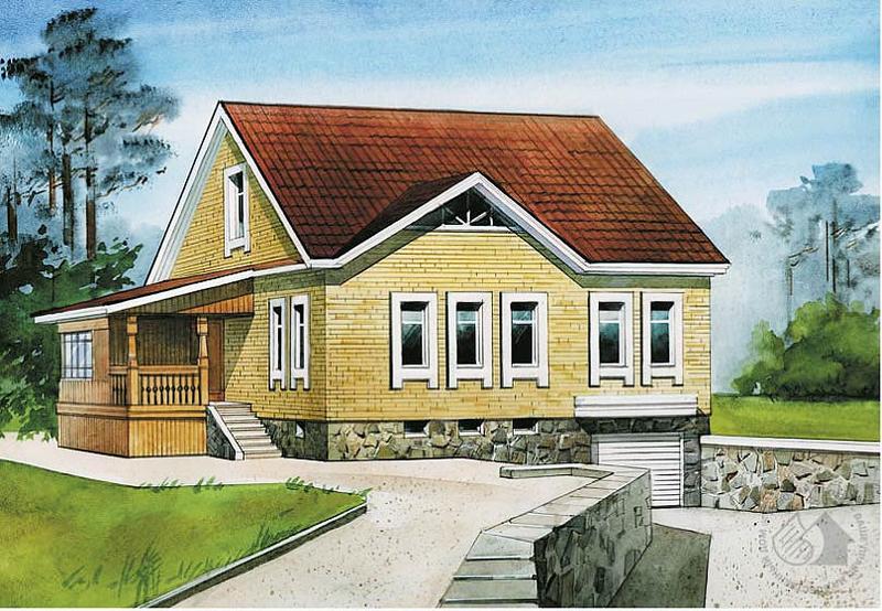Компактный и экономичный одноэтажный дом с мансардой – отличный вариант для семьи со средним доходом. В доме три уровня, на которых есть все необходимые помещения, обеспечивающие комфорт проживания семьи. В подвале – гараж с мастерской и помещения для релаксации. Этот уровень связан с первым, предназначенным для дневных занятий и работы. Кабинет может занять место кухни, а кухню-столовую можно приблизить к гостиной. Гостиную можно отделить от прихожей остекленной перегородкой или раскрыть в холл-прихожую, которая в этом случае станет светлее. Мансардный этаж также можно решить по-разному, все зависит от состава семьи и стиля жизни владельцев. Для дополнительного освещения мансардного этажа можно использовать мансардные окна Velux.