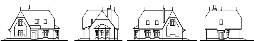 Стремление оптимизировать планировочное решение, добиться большей экономичности не в ущерб комфорту привело к появлению этого варианта. Основное отличие заключается в отсутствии встроенного гаража. Он удален за пределы дома, а вместе с ним и шум, выхлопные газы и прочий дискомфорт. На его месте расположились бойлерная и хозяйственные помещения. Такая рокировка позволила разместить на первом этаже сауну с душевой. Весь правый пролет дома занимает единое пространство, образованное гостиной и кухней-столовой. Планировка мансарды тоже претерпела некоторые изменения. Все ее четыре спальни расположены на одном уровне и выходят в один небольшой лестничный холл. Две из четырех спален имеют только верхнее освещение. Габариты дома не претерпели изменений.