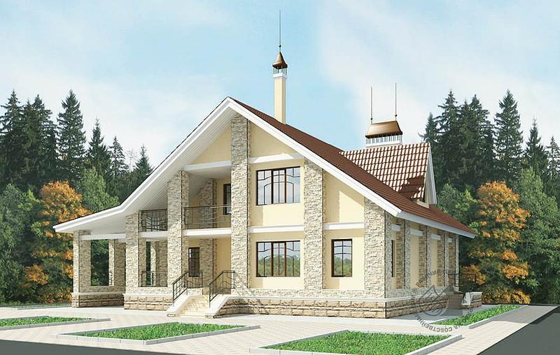 - Каркасный коттедж с мансардой