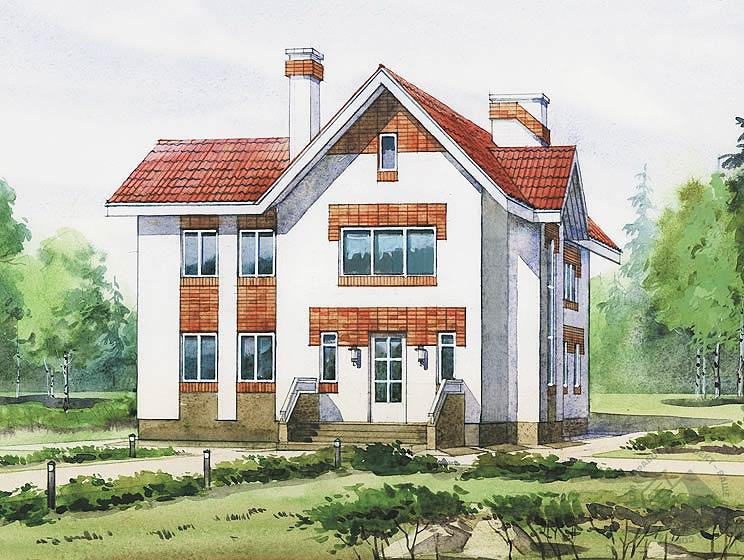Перед вами дом, который по праву можно отнести к постройкам эконом-класса. Выполненный из ячеистого бетона, без цокольного, заглубленного этажа, с простым профилем кровли, он станет находкой для заказчиков со средним уровнем доходов. И в то же время по составу помещений и уровню комфорта дом соответствует всем требованиям, предъявляемым к зданиям такого класса. Два его жилых этажа имеют традиционную, но очень рациональную планировку, менять которую в данном случае нет смысла, так как она оптимальна. В доме существует мансардный этаж, не показанный на планах, который вполне можно рассматривать как резерв полезной площади дома.