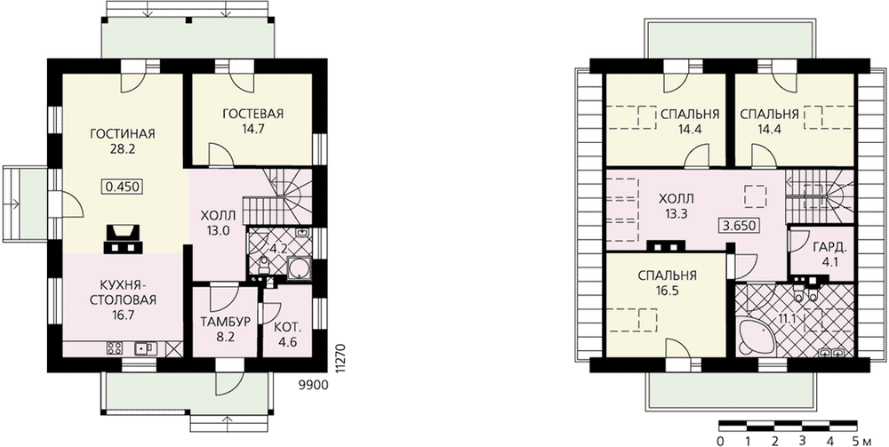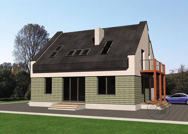 Рационализм и прагматизм, свойственные европейскому образу жизни, в полной мере нашли свое отражение в проекте этого дома. Очень компактный план, рациональная планировка и отсутствие избыточных помещений при достаточном уровне комфорта - убедительные тому подтверждения. В доме один этаж и мансарда, чердак и подвал отсутствуют. В проекте очень активно используются окна верхнего света. В основном через них и освещаются помещения мансарды. Здесь расположены три спальные комнаты, ванная, небольшая гардеробная и лестничный холл. Планировка первого этажа традиционна для небольшого коттеджа. Гостиная, кухня-столовая и холл решены в едином объеме. Гостиную и кухню-столовую условно разделяет камин. При входе в дом расположена котельная и сблокированный с ней сан.узел. Небольшая гостевая комната дополняет планировку этого этажа. Все понятно и логично, при этом удобно и достаточно комфортабельно.