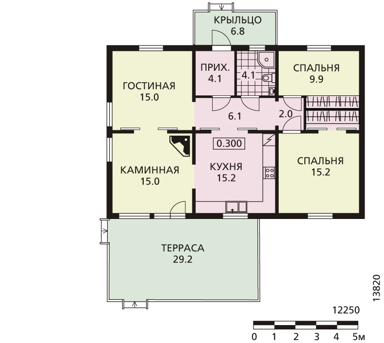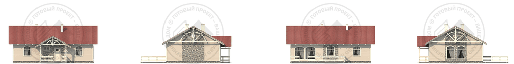 Данный проект - аналог G-1653-0. Материалы, площадь и даже габариты у этого проекта те же. От оригинала его отличает планировка: по-другому решена кухня, гостиная, появилась небольшая каминная зала. В противоположной части дома расположены две спальни, разделенные гардеробными комнатами. На просторной террасе можно собираться с гостями в теплое время года.