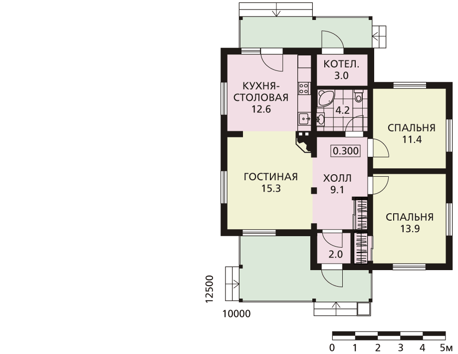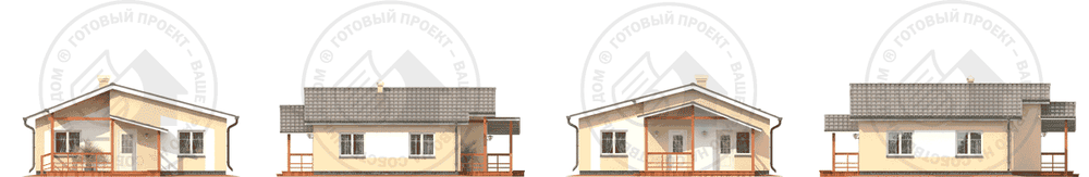 Классический одноэтажный дом для усадебной застройки. Планировочное решение четко разграничивает приватные и общие помещения дома, обеспечивает комфортные условия для семьи из 3–4 человек. Все комнаты тяготеют к квадратным формам, облегчая расстановку мебели. Влажные зоны объединены и расположены в центре, что позволяет сократить затраты на инженерное обеспечение дома. Главный фасад с просторным крыльцом-террасой предполагает строительство дома по красной линии уличной застройки. Выход из кухни-столовой на террасу с заднего фасада удобно связывает внутренние помещения дома с территорией домовладения и другими постройками на участке. Фасадное решение дома лаконично и оставляет будущим владельцам возможность придать жилищу индивидуальность: вентилируемый фасад на основе цементных плит позволяет решить наружные стены в любом цветовом или фактурном исполнении. По желанию дом может быть построен с чердачным перекрытием или скатными потолками. В первом случае небольшое чердачное пространство может быть использовано для целей хранения, во втором – открытые стропильные фермы позволят эффектно раскрыть внутреннее пространство дома.