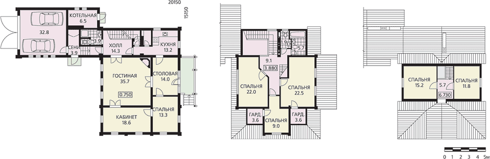 Двухэтажный коттедж с мансардой, заслуженно названый автором экологичным, спроектирован для строительства на ровном участке шириной не менее 20 м в системе поселковой застройки. Дом достаточно удобен для проживания семьи из двух поколений. Гараж на два автомобиля в одноэтажной пристройке, выполненной из кирпича, выдвинут к передней границе участка, что обеспечивает удобный въезд в гараж непосредственно с проезжей части. Главный вход в дом организован также со стороны улицы, второй вход – в глубине участка, через террасу. В цоколе дома, под кухней, расположен небольшой полуподвал с кладовой площадью 11 м2 (на планах не показан). Второй и мансардные этажи – это спальная зона дома, один из уровней может принадлежать старшим членам семьи, второй – младшим.