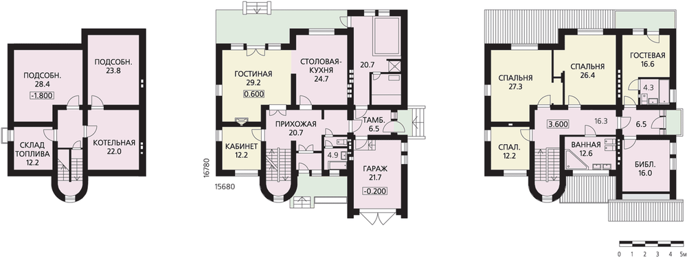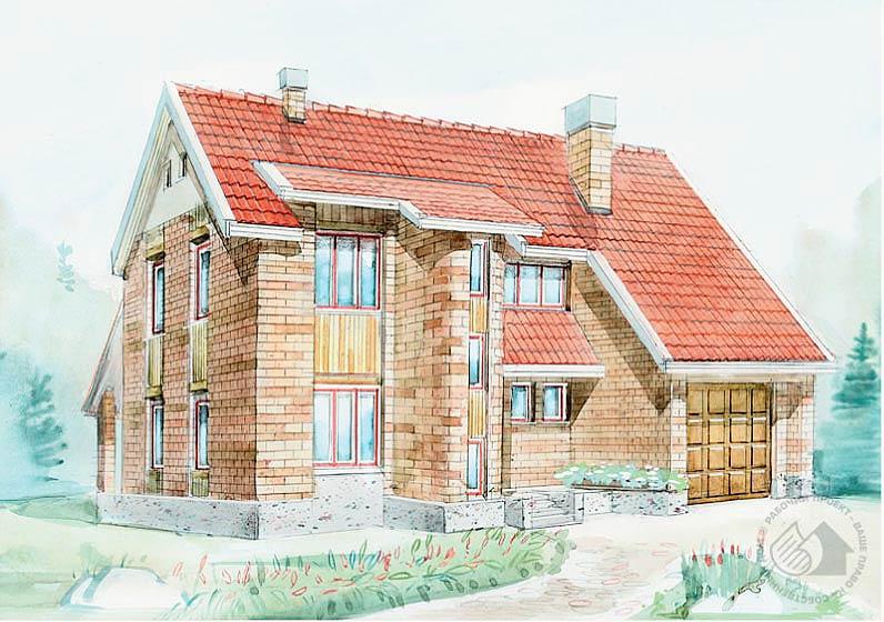 Добротный загородный дом для многочисленной семьи. Планировочная структура дома предполагает обеспечение высокого уровня комфорта: в доме четыре входа, два из которых – со стороны сада, приусадебного участка. Три ванных комнаты с полным набором оборудования размещены сообразно требованиям евростандарта, одна из ванных комнат находится непосредственно при гостевой комнате. Кабинет и библиотека могут при необходимости иметь другое назначение. Блок помещений для отдыха – сауна с бассейном – дополняет привлекательность этого респектабельного жилья, удобного для проживания и приема гостей. Выбор материалов для фасадов может быть сделан с учетом конкретных пожеланий заказчика.
