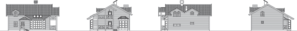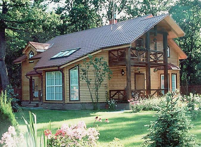 Уютный деревянный дом с красивыми фасадами и продуманной планировкой. Остекленные эркеры визуально раздвигают пространство первого этажа, связывая находящихся внутри с окружающей природой. Угловая лестница ведет из гостиной на галерею второго этажа. Отсюда можно выйти на большую террасу или полюбоваться видом, открывающимся через мансардные окна Velux над двусветным пространством гостиной. Внутреннее пространство дома воспринимается единым и цельным. Коттедж имеет все необходимые жилые помещения: три изолированные спальни и ванную в мансардном этаже, большую гостиную с камином, соединенную с кухней, а также изолированную спальню и сауну с бассейном – на первом этаже.
