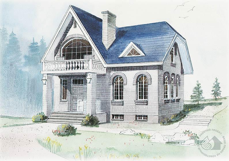 Одноэтажный жилой дом с подвалом и мансардой для постоянного проживания большой семьи. Дом хорошо подойдет для строительства на узком участке. Лаконизм и выразительность облика делают этот уютный дом приемлемым для любой среды. Помимо главного входа в доме запроектированы выходы из кухни и гостиной на террасу, ориентированную в сад. В подвале, куда можно попасть как непосредственно из прихожей, так и с улицы, размещены подсобные помещения и просторная комната отдыха, назначение которой может быть определено владельцами. Это помещение имеет естественное освещение и подойдет для тренажерного зала, сауны с бассейном или мастерских. В мансардном этаже находятся четыре спальни, две из которых имеют выходы на террасу и балкон.