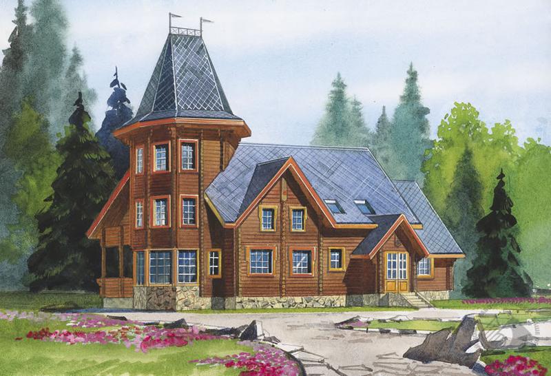 - Бревенчатый коттедж