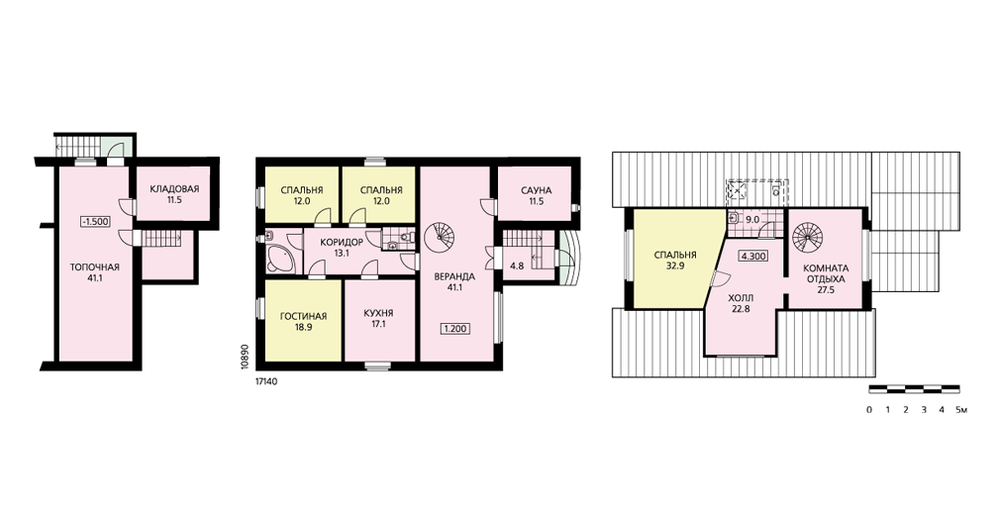 «Мой дом – моя крепость» – это определение как нельзя лучше подходит к проекту этого дома. Приземистый объем, массивные стены, бойницы окон создают ощущение надежности и защищенности. Практически глухие боковые фасады укроют от назойливого любопытства соседей. Но за этими массивными стенами скрывается современная планировка, традиционная для загородного коттеджа. В доме два этажа, один из которых мансардный. Рекреационная зона первого этажа – просторная веранда, самое большое помещение дома. Если вы предполагаете строить дом в теплой климатической зоне, то веранду можно использовать как гостиную, а освободившуюся комнату превратить в спальню. Яркий акцент интерьера – крутая винтовая лестница, которая ведет на мансарду, где предлагается оборудовать спальную зону дома.