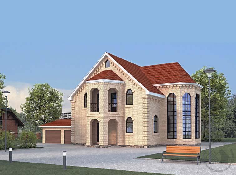 Представительный мансардный дом с гаражом имеет четкую планировочную структуру с зонированием по двум этажам. Гараж решен как пристройка, и при необходимости, от него можно отказаться. Существует также проект коттеджа без гаража.