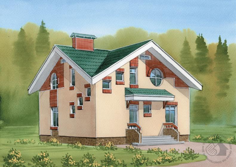 - Кирпичный коттедж с мансардой