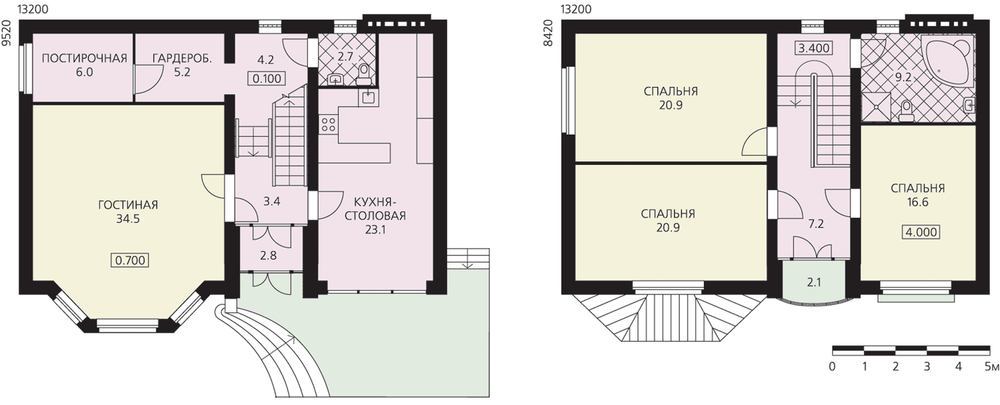 Небольшой традиционный коттедж с эркером достаточно прост по своему решению и комфортабелен. Он имеет два полноценных этажа и небольшой неэксплуатируемый чердак, подвал отсутствует. В центральном пролете здания, между двух несущих стен, расположена лестница. На первом этаже по одну сторону от нее находится кухня-столовая, по другую – гостиная и смежные с ней гардеробная и постирочная. Эти помещения, разделенные перегородками, вполне могут быть перепланированы, например, на месте постирочной и гардеробной можно расположить кухню-столовую, а освободившуюся площадь отдать под другое помещение. На втором этаже находятся три спальни и ванная комната. Один из фасадов дома полностью глухой, что позволит сблокировать дом с другими постройками, например хозяйственными, или гаражом.