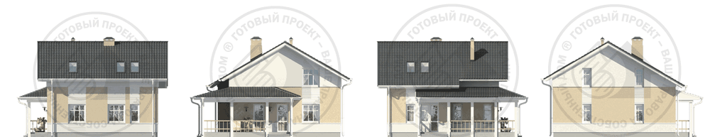 Представленный проект эффектно разрешает эти проблемы. Два варианта крыши дома с единым конструктивным решением не только в корне отличают постройки друг от друга, но и предоставляют выбор жилья разной площади. Несложный в плане и недорогой в строительстве дом вполне cоответствует задачам, предъявляемым к домам для постоянного проживания. В зависимости от формы крыши – вальмовой и двускатной – общая площадь дома изменяется в пределах от 140,5 кв. м до 109,4 кв. м. В своем основном варианте (общая площадь 129,9 кв. м) дом идеально соответствует потребностям семьи из 4–5 человек.