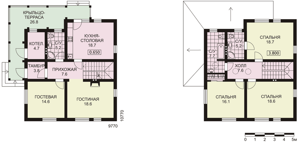 Несложный в плане и недорогой в строительстве дом вполне соответствует задачам, предъявляемым к домам для постоянного проживания. В зависимости от формы крыши – вальмовой, двускатной и многоуровневой односкатной – общая площадь дома изменяется в широких пределах. В своем основном варианте (общая площадь 140,5 кв. м) дом идеально соответствует потребностям семьи из 5–6 человек. Вариант с двускатной крышей несколько меньше по площади за счет скатных потолков мансарды (129,9 кв. м). Разработан также и маленький дом с односкатной крышей (109,4 кв. м).