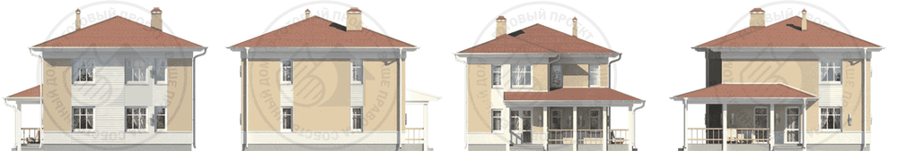 При выборе дома для индивидуального строительства нередки случаи, когда удовлетворяет только что-то одно – эстетика фасадов и облик дома в окружающей застройке или планировочное решение и полезная площадь дома. Данный проект способен эффектно разрешить это противоречие. Два варианта крыши дома с единым конструктивным решением не только в корне отличают постройки друг от друга, но и предоставляют выбор жилья разной площади.