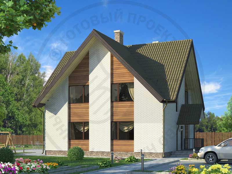 Традиционный облик, оптимальная конструктивная схема и рациональность планировочного решения делают этот дом экономичным и пригодным для строительства в любой среде. Помещения первого этажа компактно размещены вокруг холла-прихожей и имеют двустороннюю ориентацию. Это позволяет более свободно ориентировать дом по сторонам света при «посадке» на участке. Большая гостиная – одно из главных достоинств дома, она не только удобна для отдыха семьи, но и способна вместить большую компанию гостей. В тихой зоне мансардного этажа расположены четыре спальни и ванная комната.