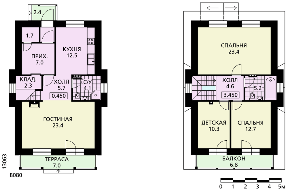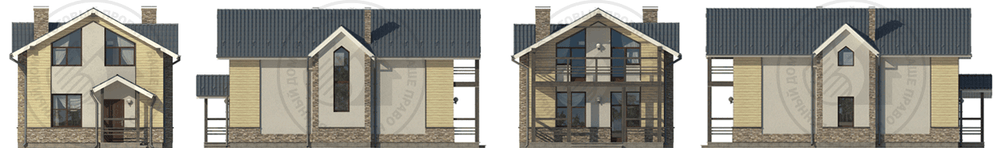 Оптимальный вариант для узкого участка, ведь по ширине дом чуть более восьми метров. Планировочное решение коттеджа позволяет размещать его на участке, «прижимая» к одной из границ. Почти 113 метров внутренней площади позволяют с комфортом использовать этот проект для строительства дома как сезонного, так и постоянного проживания.